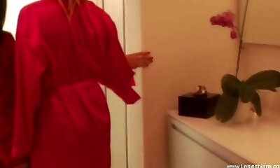 Two unsatisfied house wifey met and made a superb lesbo session with all dirty talk in Hindi