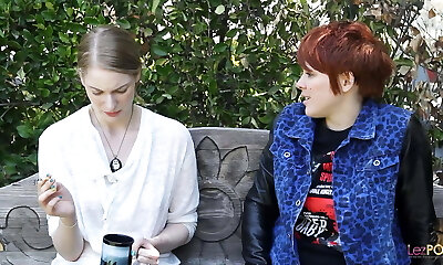 Lesbo anniversary party with cream and strawberries but with a turnout on the menu