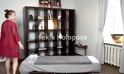 Despite her bashfulness Irka opens up her legs to masseuse