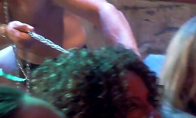 A Dozen of Girls Playing with a Submissive One in Lesbian BDSM Group Sex