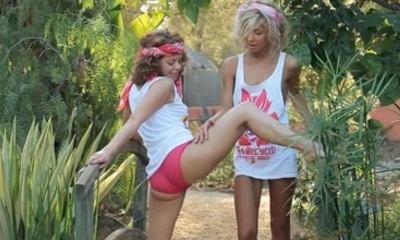 लेस्बियन आउटडोर वर्षा वुड्स रस्सी पर भाड़ में जाओ